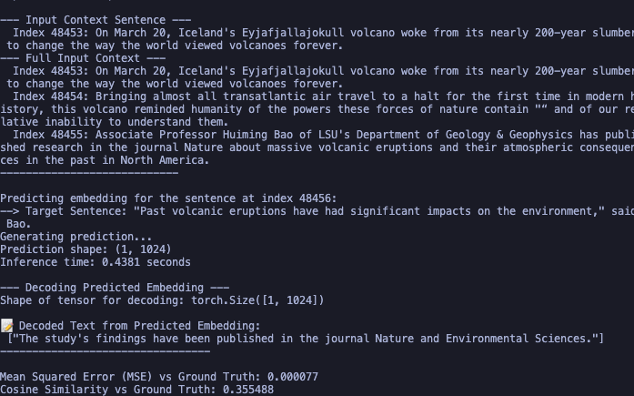 i though that it was because even if one percent error in the embedding if it is at the wrong place it causes it to completely change the meaning of the embedding so what i did was use a cosine similarity loss
